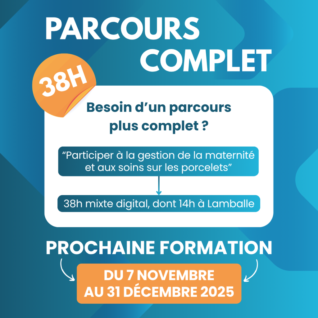 🎓 Parcours complet – 38h : “Participer à la gestion de la maternité et aux soins sur les porcelets” (📍du 7 novembre au 31 décembre 2025)