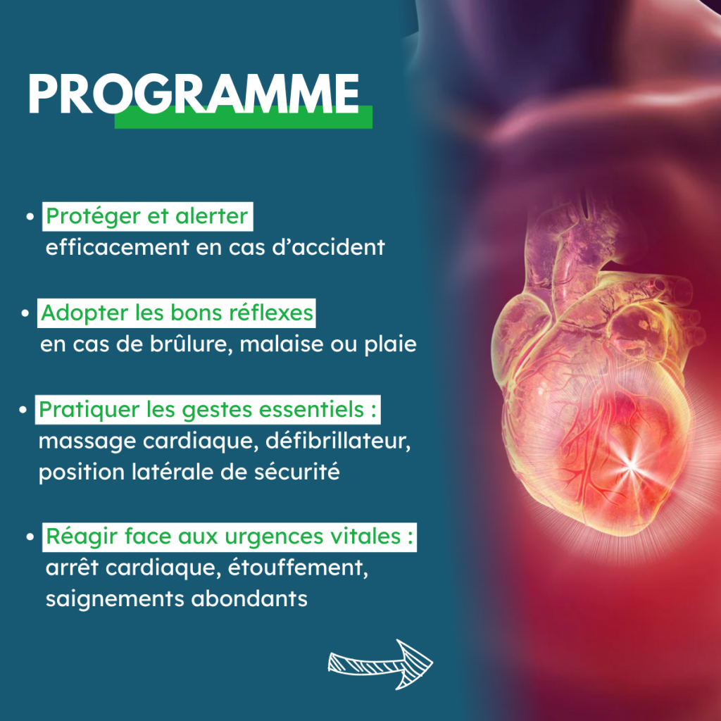 ▪️ Réagir face aux urgences vitales : arrêt cardiaque, étouffement, saignements abondants
